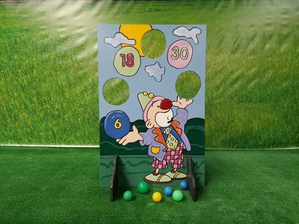 Bal gooi clown 2, probeer zoveel mogelijk ballen door de gaten in het spel te werpen.