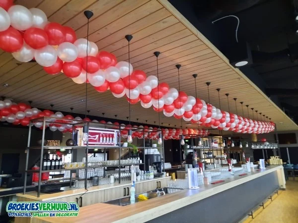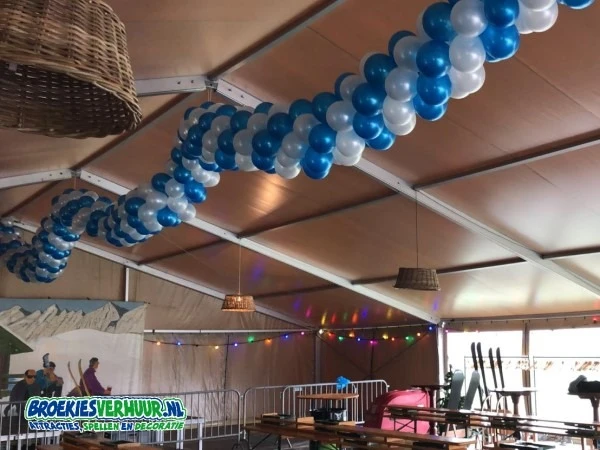 Hoe leuk is dat, je feestlocatie in een keer helemaal aankleden. Met een ballonen slinger in elk gewenste aantal strekkende meters schiet dat lekker op. Een ballonnen slinger wordt altijd op maat afgeleverd en hoeft alleen nog maar even opgehangen te worden.