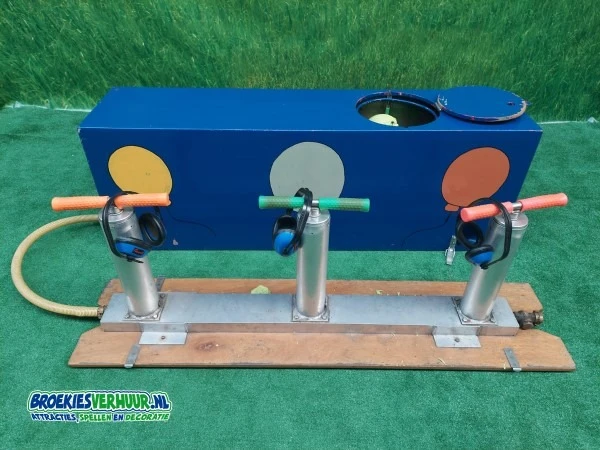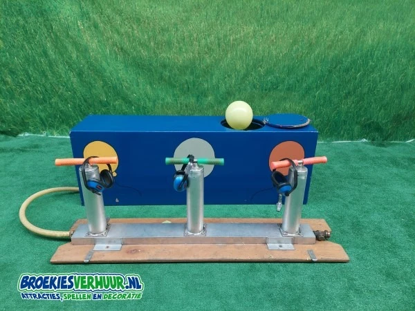 Pomp met drie personen tegelijkertijd een ballon op tot deze knalt. De drie snelste hebben het spel natuurlijk gewonnen.