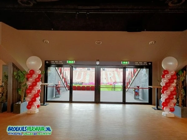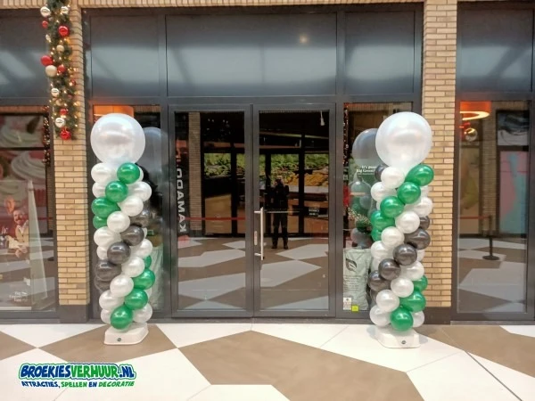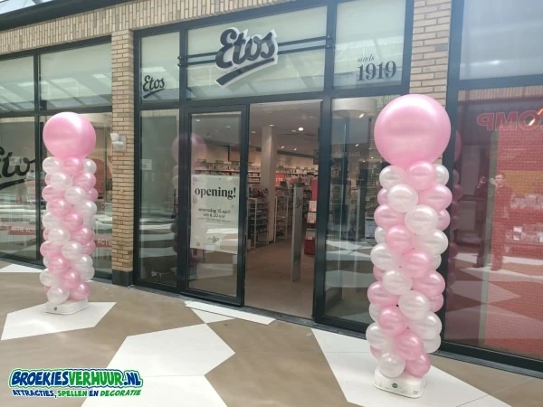 Een Ballonnen Zuil met Topballon meter, Deze wordt gemaakt door luchtgevulde ballonnen in de door u aangegeven kleuren. Een ballonnenzuil wordt standaard geleverd met een verzwaarde pasasolvoet in zwart of wit welke na gebruik weer retour komt. Ballonnen Zuilen worden veelal gebruikt bij openingen, winkelcentra, bruiloften, verjaardag, jubileum en andere actviteiten,