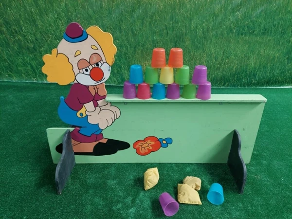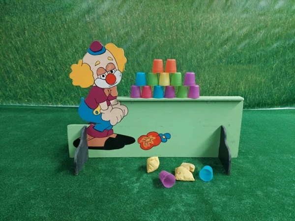 Bekers Gooien Clown, Probeer zoveel mogelijk bekers om te gooien.