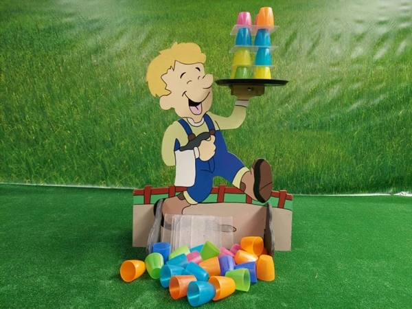 Bekers Stapelen Ober, probeer zoveel mogelijk bekers op te stapelen. En indien de toren omvalt ben je natuurlijk af en moet je weer van voor af aan beginnen.