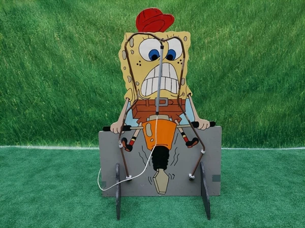 Bibber Spiraal Spons, probeer zonder het spel aan te raken het stokje naar de andere kant van het spel te krijgen. Bij aanraking gaat de bel en moet je weer vanaf het begin opnieuw starten.