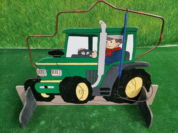 Bibber Spiraal Tractor, probeer zonder het spel aan te raken het stokje naar de andere kant van het spel te krijgen. Bij aanraking gaat de bel en moet je weer vanaf het begin opnieuw starten.