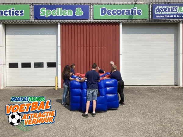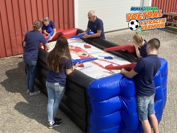 Een superleuk voetbalspel, Blaas Voetbal. Blaasvoetbal speel je met 4 tot 6 spelers. Probeer de bal in de goal van de tegenstander te blazen doormiddel van de lucht die door het spel op het veld wordt geblazen. Leuk voor jong en oud.
