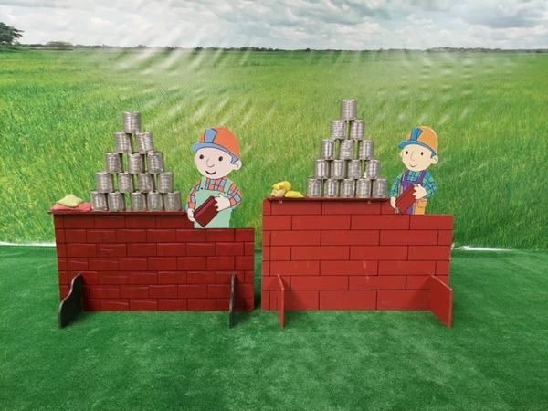 Blikken gooien Bouwvakker , Een ouderwets leuk blik gooi spel welke natuurlijk niet mag ontbreken tijdens uw activiteit.