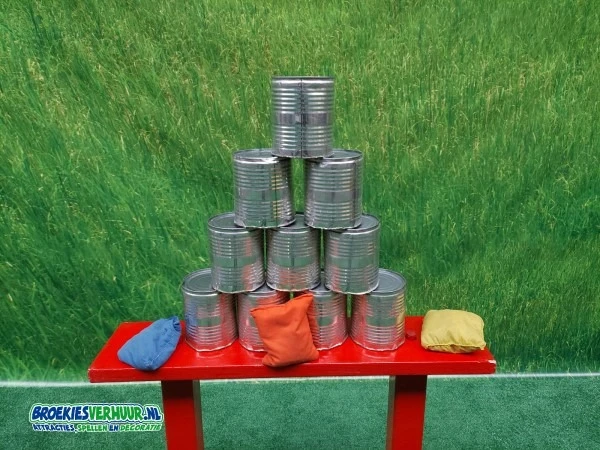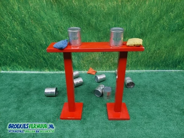 Wie gooit als eerste alle blikken van het spel. een leuk en simpel wedstrijd onderdeel op de sportieve dag.