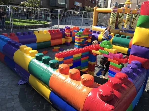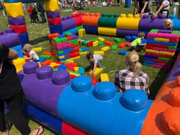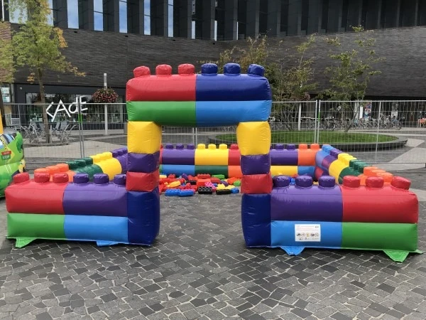 Een fantastische aanvulling tijdens uw evenement is deze bouwblokken boarding van 5x5 meter.