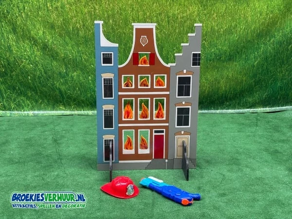 Brandweer Spel 1, een superleuk spel voor de echte brandweer liefhebbers. zet alle vlammen eerst rechtop in het spelbord en probeer zo snel als mogelijk alle vlammen te blussen met de waterspuit. Natuurlijk maakt de bijgeleverde brandweerhelm het spel pas echt compleet.