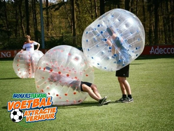 Voetballen in een Bumper voetbal blauw (of Bubbel Voetbal) is vergelijkbaar met echt voetballen; twee teams die proberen de bal in elkaar’s doel te werken. Er is echter 1 klein verschil wat het spel compleet anders maakt! Doordat alle spelers in een bumper voetbal blauw of rood zitten kan je elkaar omver lopen, tegen de keeper van de andere partij op springen of de spits van de tegenstander sandwichen! Hilariteit gegarandeerd!