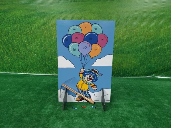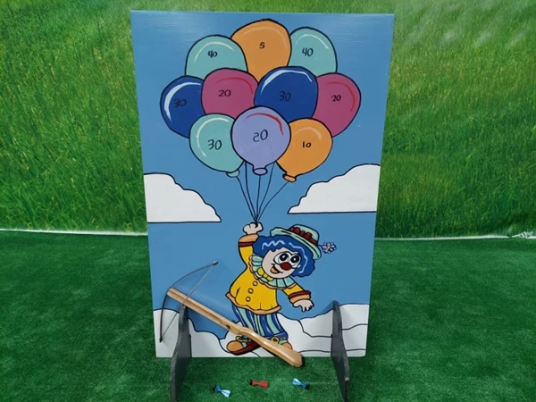 Circus Kruisboog Schieten, probeer zoveel mogelijk punten te scoren door met de pijltjes op het spelbord te schieten.
