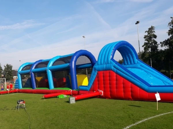 Deze 23 meter lange Combinatie klim glijbaan en mega balls staat garant voor veel sportiviteit.