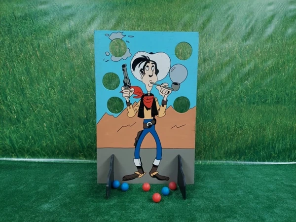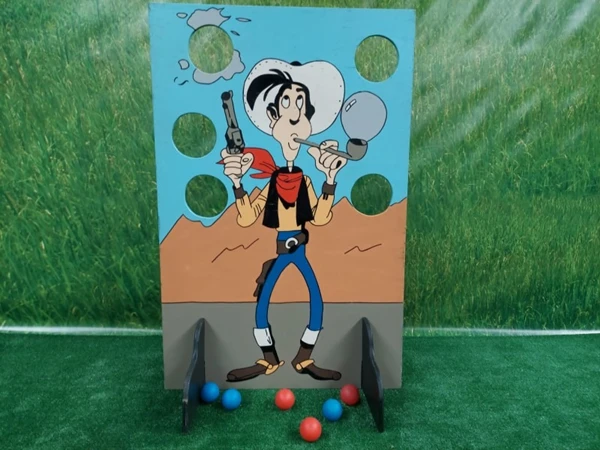 Cowboy Ballen Gooien, probeer zo veel mogelijk ballen door de gaten in het spelbord te gooien.