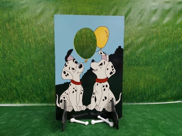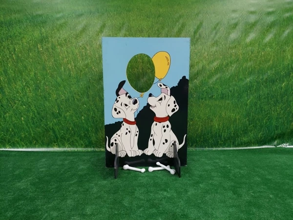 Dalmatier Spel, Probeer de hondje zoveel mogelijk botten te voeren door deze door het gat in het spel te werpen.