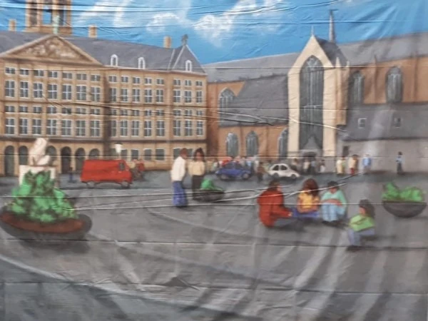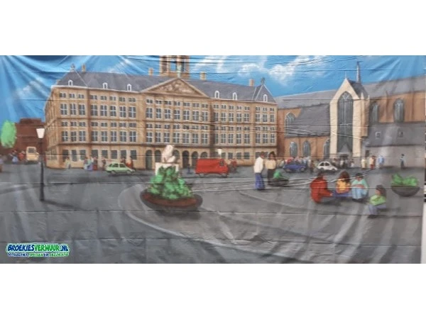 Decor Doek Amsterdams Plein is 6 x 3 meter en past helemaal in het thema Hollands.