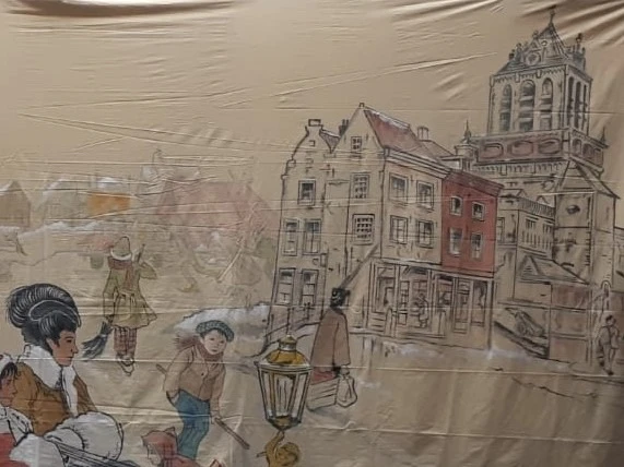 Decor Doek Anton Pieck is 10 x 3 meter en past helemaal in het thema Hollands.