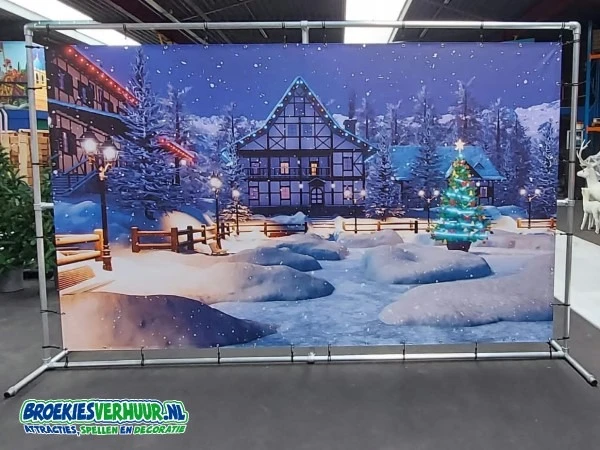 Een decor frame van Broekiesverhuur is 4 x 2.5 meter BxH. Deze frames worden geheel compleet door ons geleverd en geplaatst op locatie. De PVC doeken zijn haarscherp en zeer geschikt voor zowel binnen als buiten gebruik.