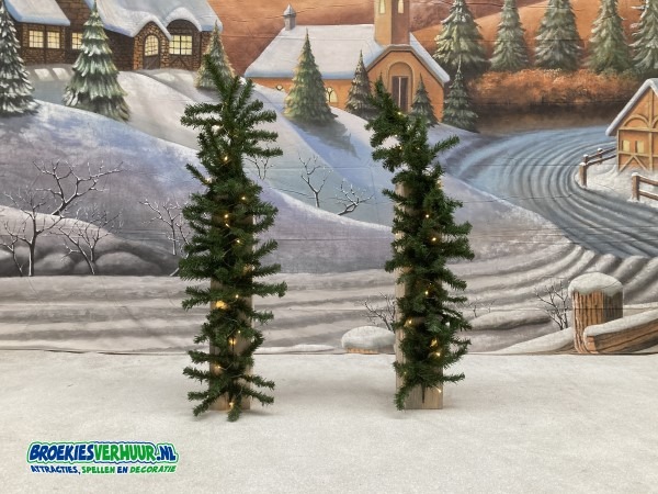 Een leuke Decoratie zuil Dennengroen Verlicht als aanvulling op uw Kerst of Winter decor setting