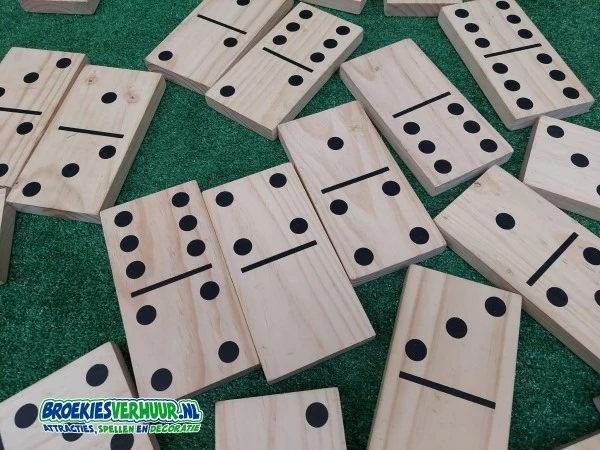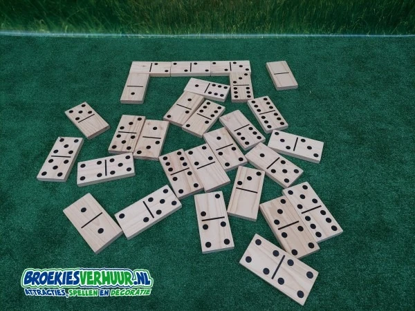 Gezellig een ouderwets potje domino, maar dan in het groot. 20 x 10 cm per steen
