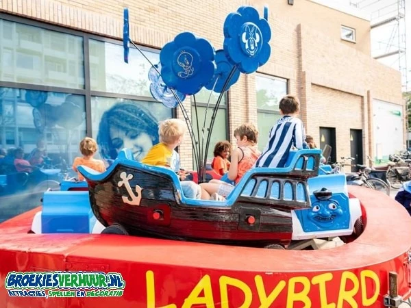 Alle kleintjes willen wel een keertje mee draaien in deze leuke draaimolen. De draaimolen is daarom altijd een groot succes tijdens een evenement of activiteit waar kleine kinderen aanwezig zijn. Deze draaimolen bied plaats aan 16 kinderen.