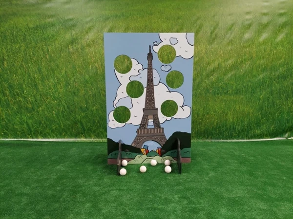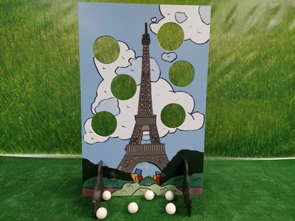 Eiffeltoren Ballen Gooien, Probeer zo veel mogelijk ballen door de gaten in het spelbord te gooien.