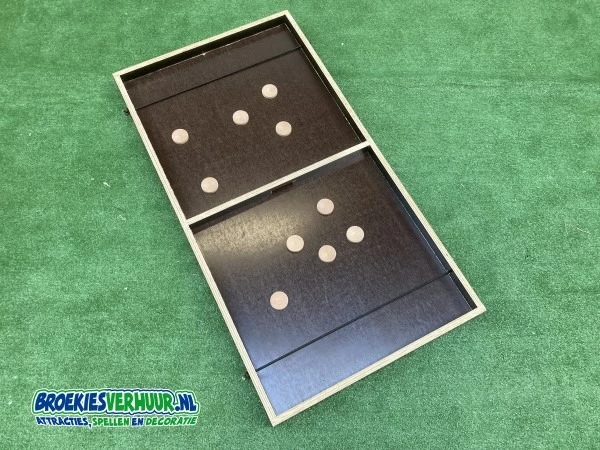 Deze Elastiek Sjoelen, ook wel Sling Shot genoemd is fantastisch om te spelen. Probeer zo snel mogelijk alle sjoelstenen op de zijde van de tegenspeler te krijgen.