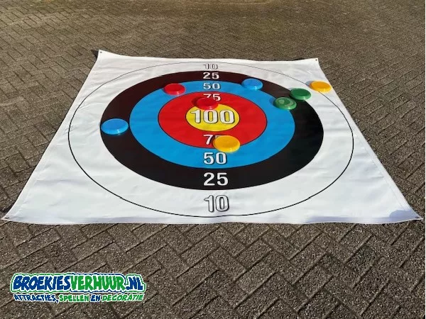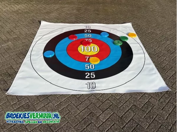 Hoe leuk is dat, een lekker potje Frisbee Werpen XL. Probeer de twee frisbees in jou favoriete kleur zo dicht mogelijk in het midden van het spelkleed te werpen. Frisbee Werpen XL speel je met 2, 3 of 4 personen tegelijkertijd. De Frisbees worden dan ook geleverd in vier verschillende kleuren.