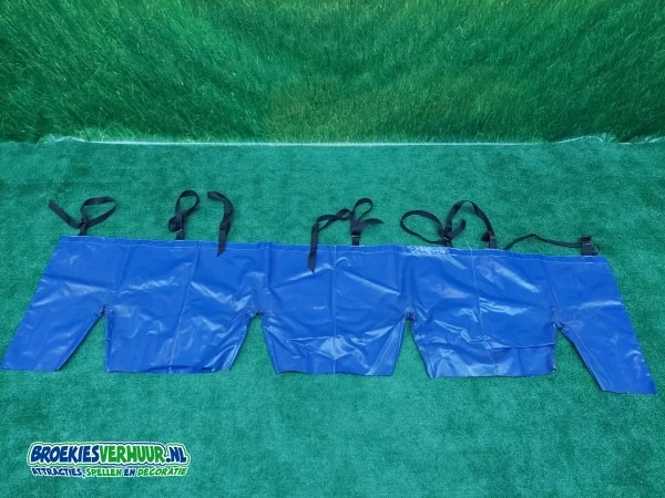 Met 4 personen samen in 1 Fun Broek, dat wordt lachen. De ultieme samenwerking wordt gevraagd bij het afleggen van een uitgezet parcours.
