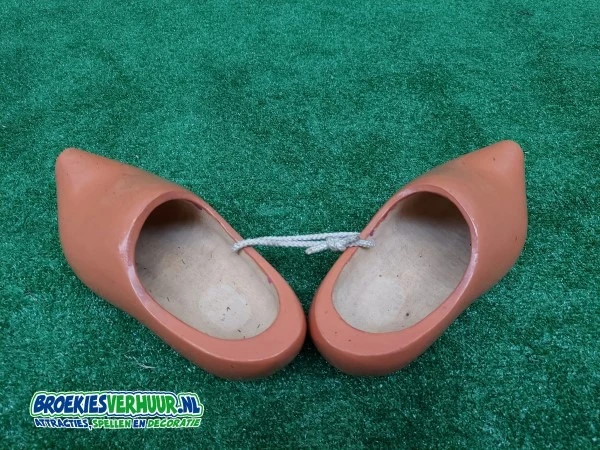 Dat is nog niet zo eenvouwdig, met een paar gekoppelde klompen een parcours afleggen. Lachen is het zeker.