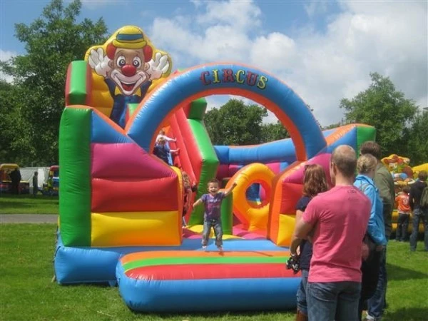 De Circus speelwereld is een bijzondere attractie, een geweldig springkussen, met veilige hoge randen, veel extra speel objecten in het kussen, en een leuke glijbaan waar de kinderen vanaf kunnen glijden. onze Circus speelwereld spreekt door zijn leuke vrolijke kleuren de kinderen erg aan. Een topattractie voor gegarandeerd uren speel en glij plezier.