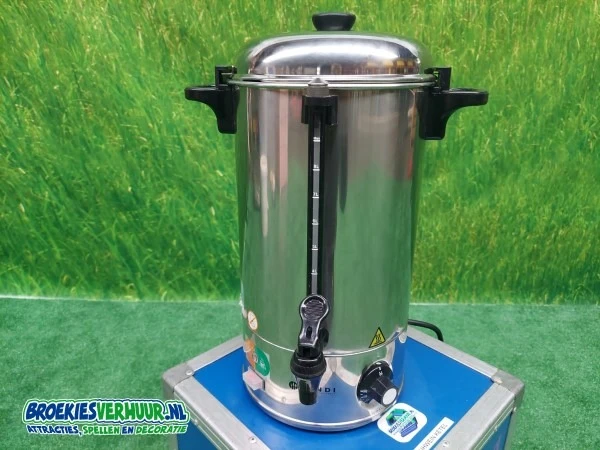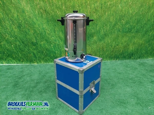 Deze ketel mag natuurlijk niet ontbreken in de wintermaanden. De Gluhwein Ketel werkt op een normaal stopcontact en is in warme instelbaar. Deze gluhwein ketel is uitsluiten bedoeld voor Gluhwein (en dus niet voor warme chocomel). Vul de Gluhwein ketel met Gluhwein en laat de ketel lekker opwarmen. Met het handige tapkraantje kun je gemakkelijk een bekertje of glaasje vullen met warme Gluhwein.