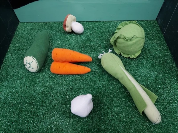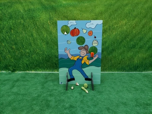 Groenteman Groente Werpen, probeer de verschillende soorten groente door de gaten van het spelbord te werpen.