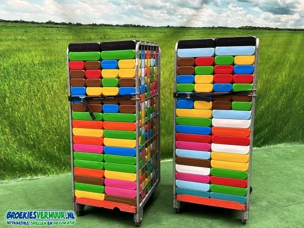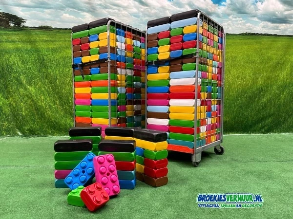 Dit zijn dezelfde XXL blokken die ook in vele speelparadijzen en attractieparken liggen. Kinderen spelen hier net mee als met Lego alleen dan in het groot. Alles wat in de fantasie van kinderen leeft kan gebouwd worden.