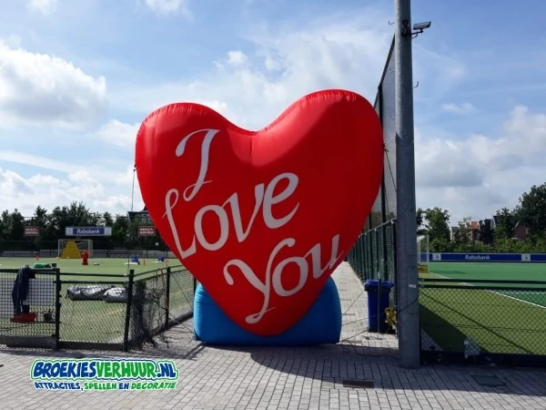 Dit enorme opblaasbare hart met de tekst "I Love You" zal niemand over het hoofd zien. Aan wie verklaar jij de liefde?