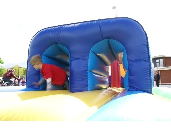 Een veelgevraagde stormbaan is deze hindernisbaan, een handig formaat van 9 meter de een aantal leuke hindernissen. De hindernisbaan is te gebruiken van jong tot oud, en kan prima ingezet worden tijdens uw sportieve of zeskamp evenement. Deze hindernisbaan is ook als combinatie te boeken met bijvoorbeeld de Klim- glijbaan of de mega balls.