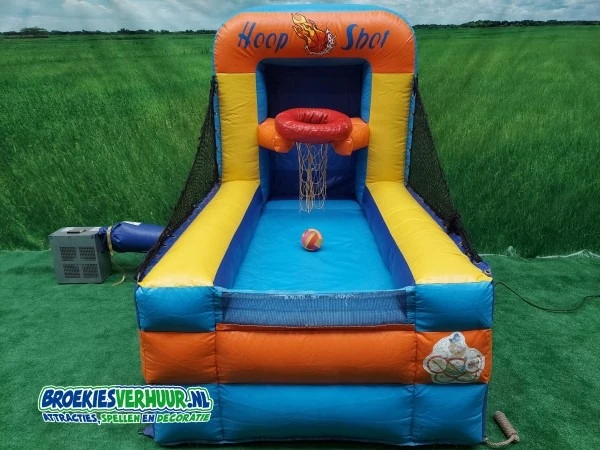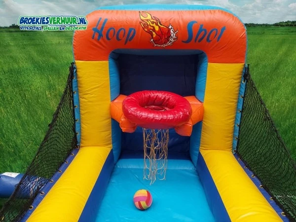 Een erg leuk opblaasbaar basketbalspel Hoop shot. Dit is een van de 4 spellen uit dezelfde opblaasbare spellen serie die wij verhuren. Erg leuk om te doen, en gegarandeerd uren speel plezier.