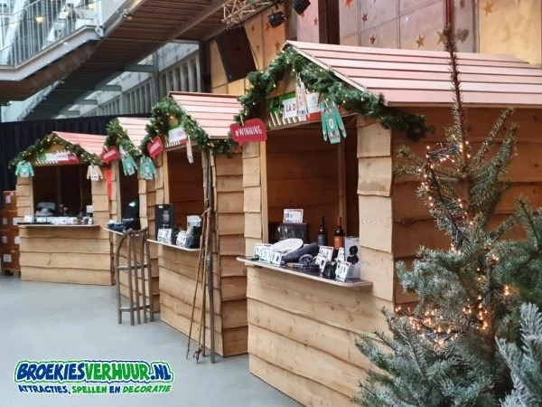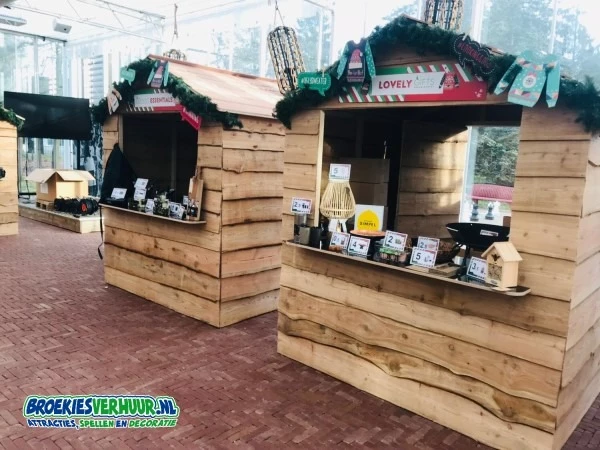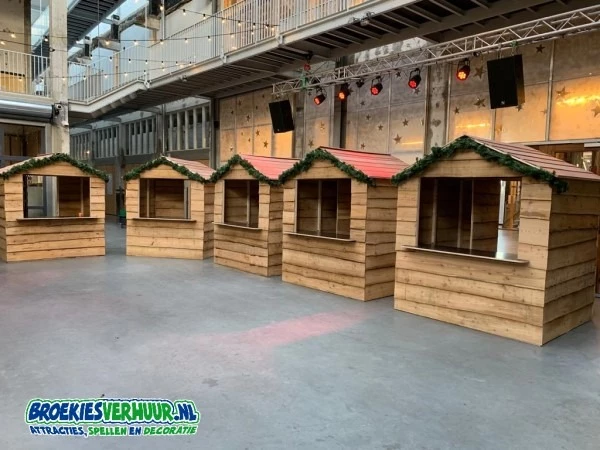 Onze mooie houten Kerst of Winter Huisjes worden uitsluitend door Broekiesveerhuur geleverd, op en afgebouwd op locatie.