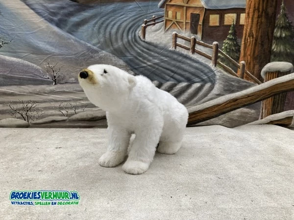Hoe leuk is dat, een IJsbeer op ware grote zittend. Deze ijsbeer is 90 x 55 x 55 cm LxBxH en kan dus alleen door ons op locatie worden geleverd.