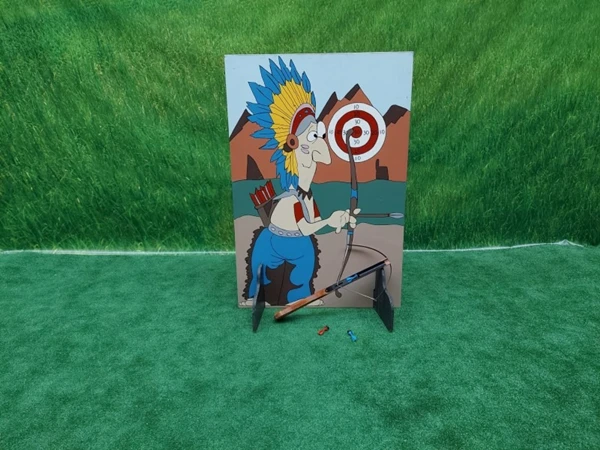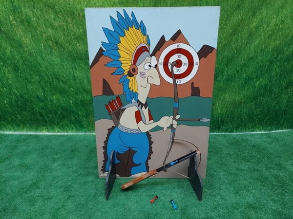 Indiaan Schiet Spel, Probeer zoveel mogelijk punten te scoren door met de pijlen op het spelbord te schieten.