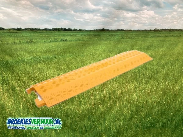 Een slimme oplossing voor het leggen van kabels over de weg, winkelcentrum enz. De kabelbrug is 100 cm breed en gemakkelijk koppelbaar. Een stukje veiligheid van Broekiesverhuur.