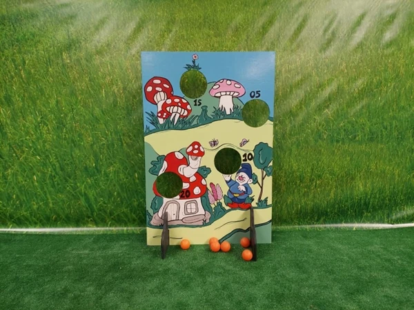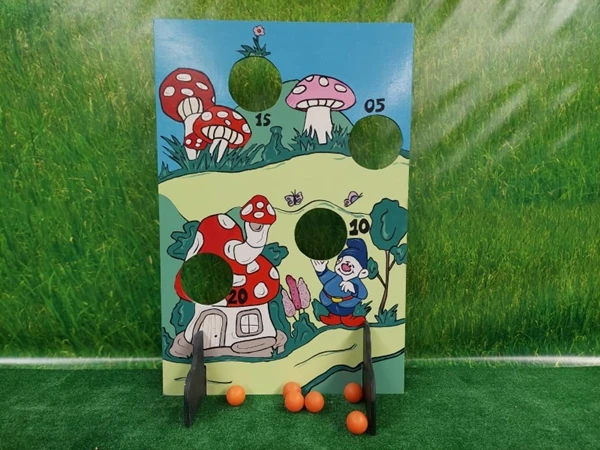 Kabouter Ballen Gooien, probeer zoveel mogenlijk ballen door de gaten van dit spelbord in Sprookjes thema te werpen.