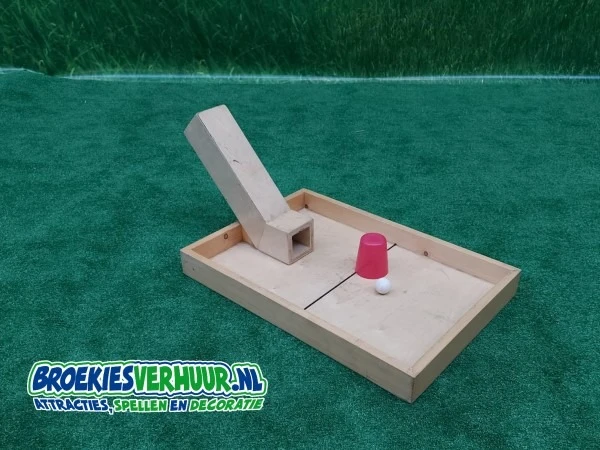 Laat een balletje los aan de bovenzijde van het spel en probeer deze te vangen met het bekertje.