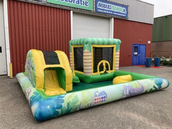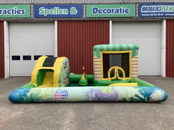 Het Kidspark Jungle Dino is een opblaasbare kinderattractie die maar liefst vier spannende speeltoestellen in één omvat. Kinderen kunnen naar hartenlust springen op het jungle mini springkussen, hun behendigheid testen met het blaasballen spel, duiken in het avontuurlijke mini ballenbad en glijden van de opblaasbare glijbaan.