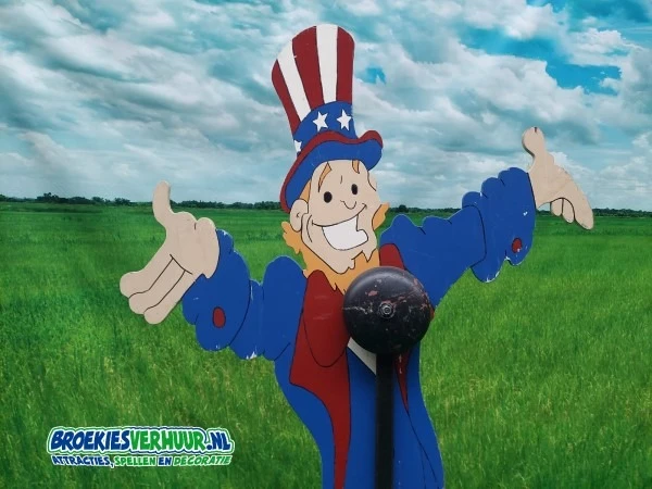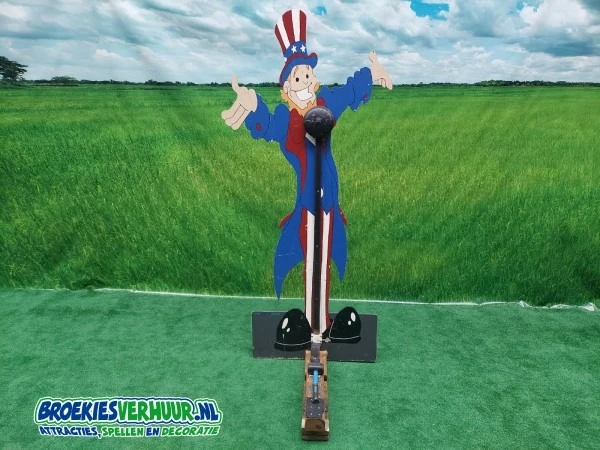 Een geweldige kinderattractie, Onze Kop van Jut Uncle Sam. Wie slaat er zo hard dat hij de bel kan laten klinken? De kinder kop van jut Uncle Sam is 2 meter hoog.