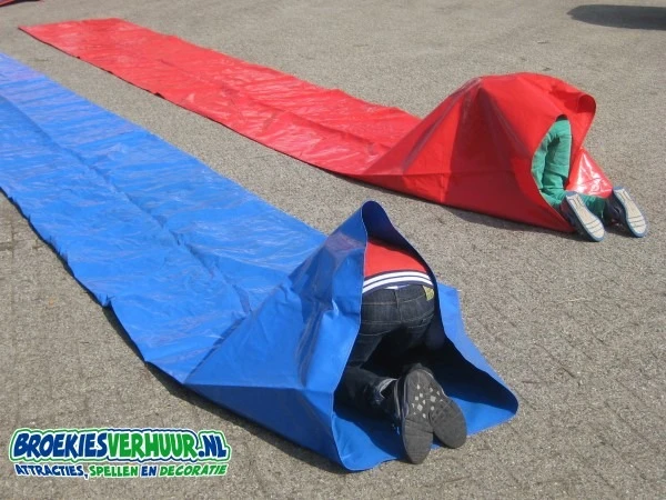 Wie kruipt er het snelst door deeze tunnel en er als eerste weer uit. Altijd leuk voor jong en oud.