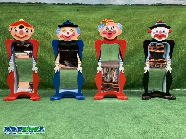 Hoe leuk is dat Lachspiegels. Deze set bestaat uit 4 verschillende lachspiegels welke allemaal voorzien zijn extra stevige pootjes waardoor ze practisch overal inzetbaar zijn. Geheel is thema kermis en kans, dat wordt lachen geblazen.