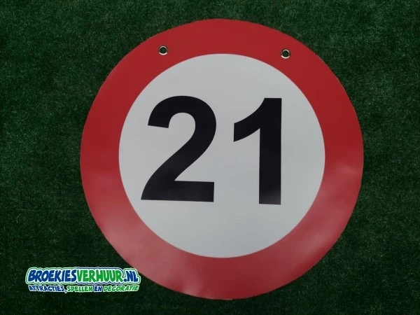 Om een Abraham of Sarah voor meer leeftijden te kunnen gebruiken hebben wij een groot aantal leeftijd borden laten maken. Deze banners in de vorm van een verkeersbord kun je gemakkelijk met een touw om de nek van elke Abraham of Sarah pop knopen.