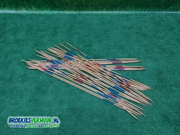 Speel het bekende Mikado spel maar dan nu in het mega groot.