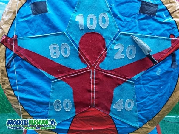 Durf jij tegen dit spel aan te gaan staan? terwijl je tegenstander start met messen werpen? Dit opblaasbare messen werpen wordt geleverd met messen van stof welke voorzien zijn van klittenband. Diegene me de meeste punten is natuurlijk de winnaar.