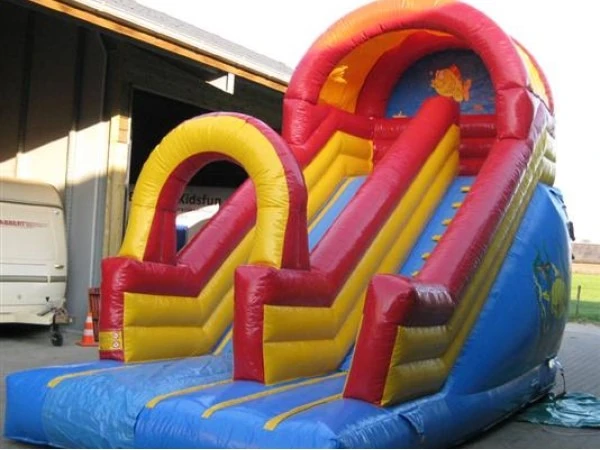 De Oceaan glijbaan is een leuke glijbaan welke vrij gemakkelijk zelf op en af te bouwen is. Eigenlijk niet veel meer dan een standaard springkussen. De Oceaan glijbaan is daarintegen wel weer eens totaal iets anders, en u zult zien dat de kinderen zich hiermee blijven vermaken. De hele dag klimmen en glijden, en hiervan krijgen ze geen genoeg. Onze Oceaan glijbaan is al te vervoeren in een ruime stationwagen met de achterbank plat, maar een kleine bestelwagen of aanhangwagen geniet de voorkeur.